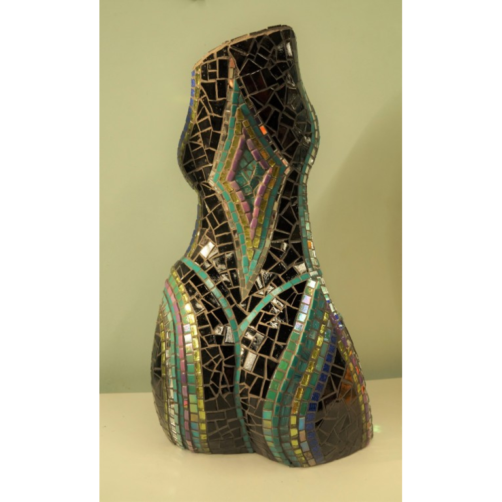 Vrouwentorso 3D in mozaïek zwart, goud, turkoois, groen