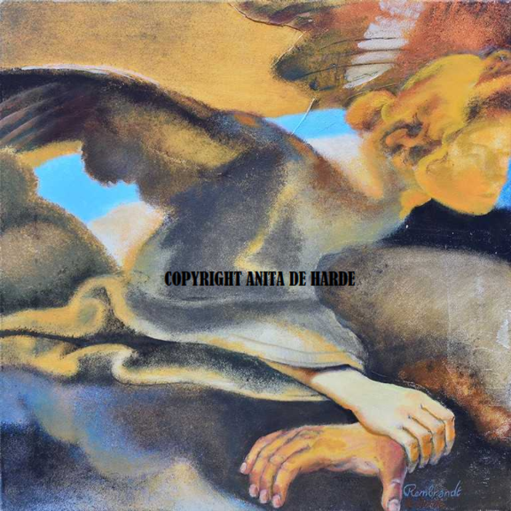 De engel weerhoudt Abraham van het offeren van zijn zoon Izaak, acryl op doek, 60 x 60 cm