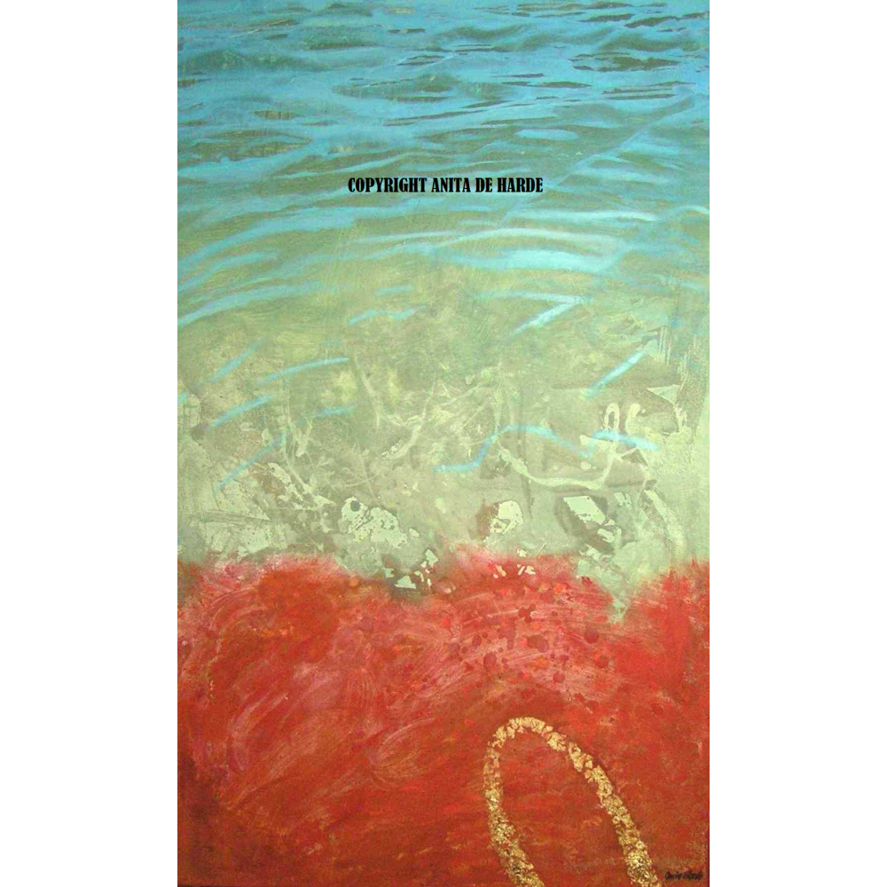 Meditatie met olieverf en acryl en bladgoud op doek 80 x 150 cm