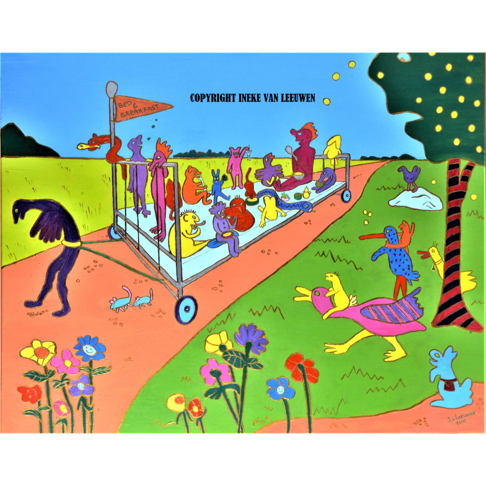 Bed and breakfast, acrylverf, 80 bij 100 cm