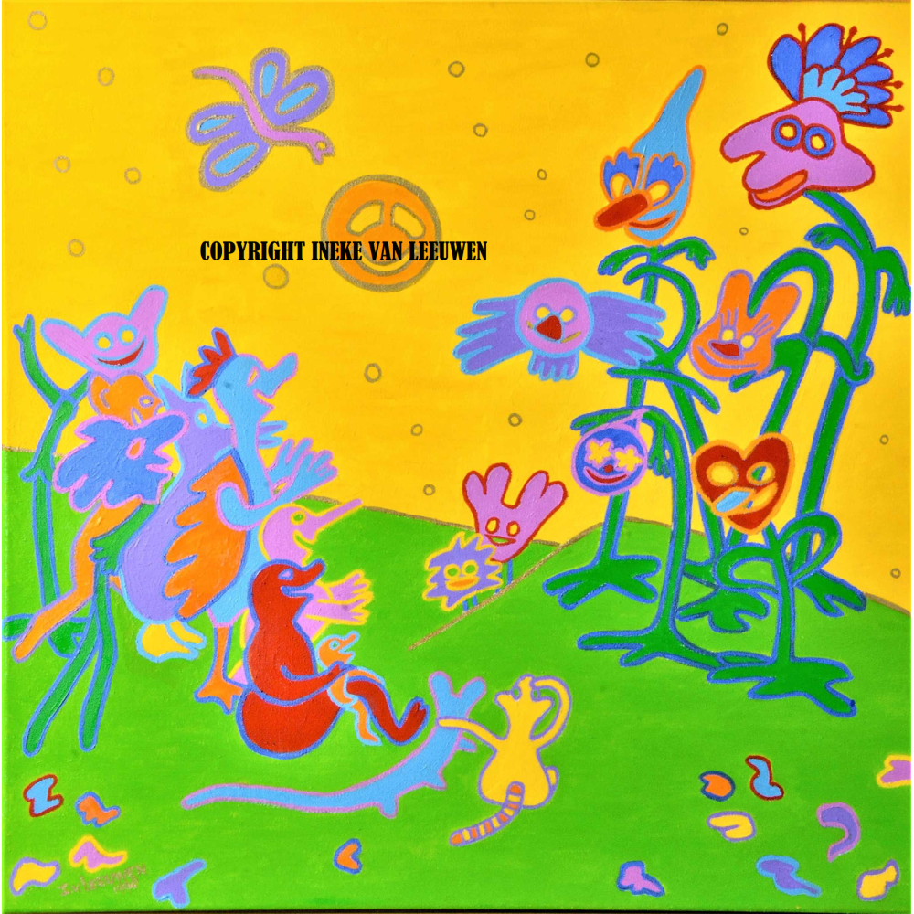 De clowns olieverf, 70 bij 70 cm