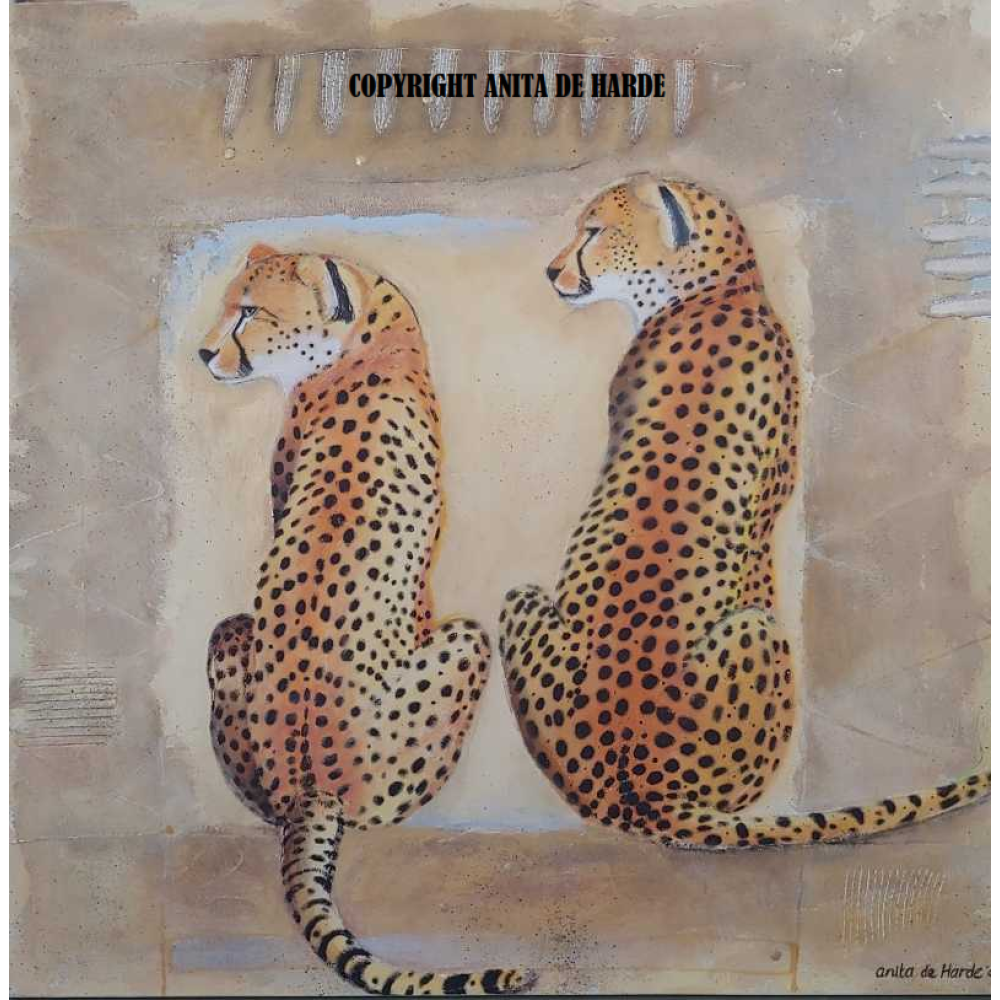 Cheetahkoppel, acryl op doek,100 x 100 cm