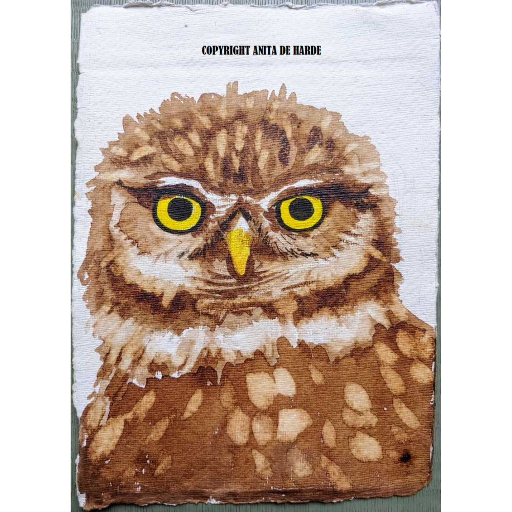 Uil, oudhollands bruin op handgeschept papier, 20 x 30 cm