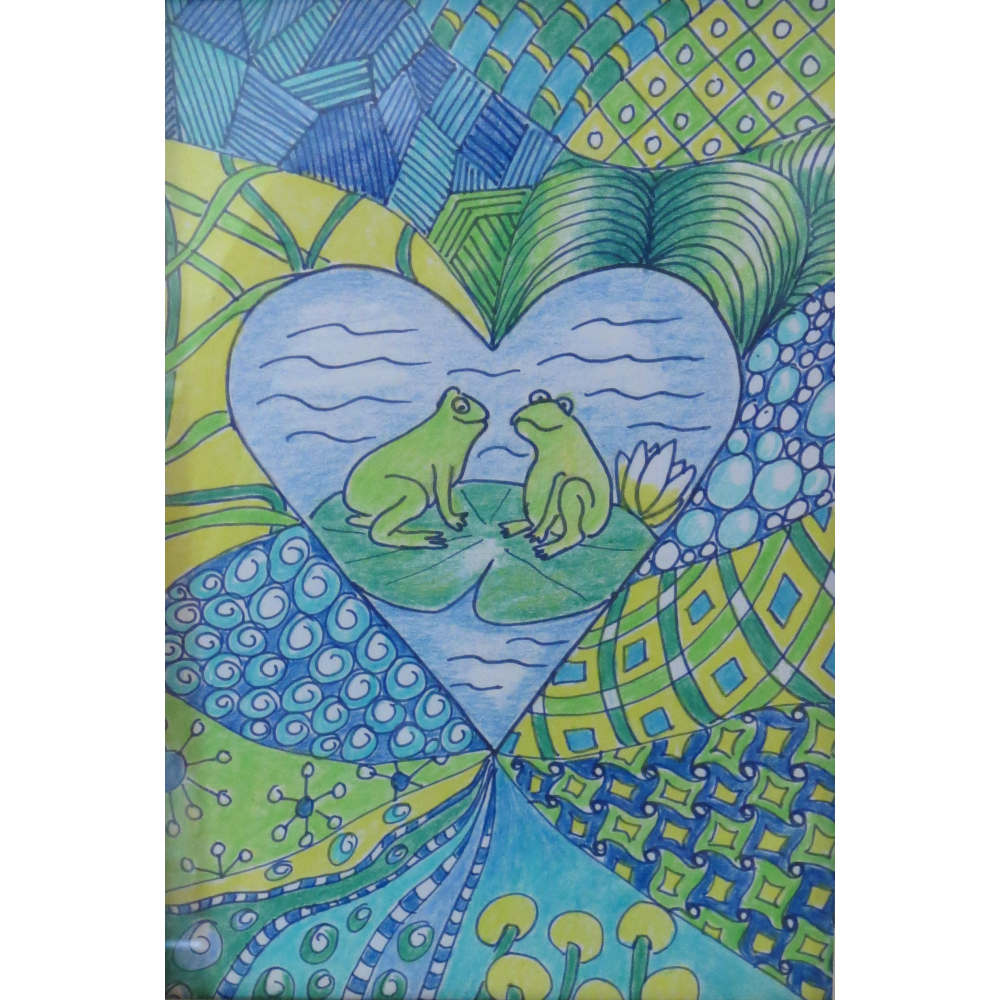 Kikkers, potloodtekening, 22 x 17 cm (inclusief lijst)