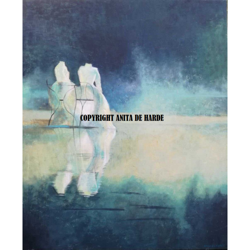 Witte wieven in de mist, acryl op doek, 100 x 120 cm