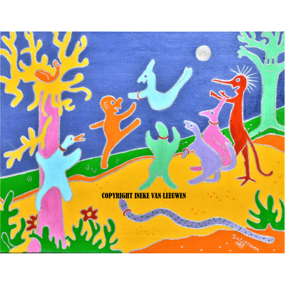 Middernachtspel olieverf 55 bij 70 cm