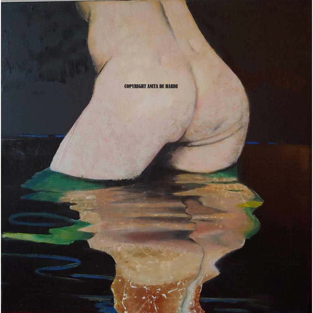 Bathing-in-gold, acryl met bladgoud, 70 x 70 cm